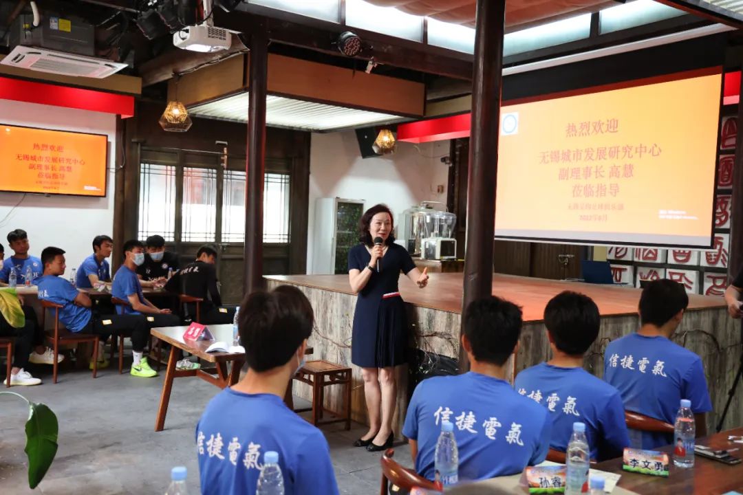 隨后,高慧同隊(duì)員們就“創(chuàng)造人生的最大價(jià)值”這一話題做了深入的分享和交流,通過(guò)生動(dòng)活潑的事例,分析了中國(guó)足球的昨天、今天和明天,并鼓勵(lì)球員把模棱兩可的熱愛(ài)變成斬釘截鐵的目標(biāo),把時(shí)間花在讓自己變得更好和追求卓越上。隊(duì)員們仔細(xì)聆聽(tīng)、認(rèn)真筆記。高慧勉勵(lì)大家充分凝聚團(tuán)隊(duì)力量,爭(zhēng)取在即將到來(lái)的新賽季再創(chuàng)佳績(jī),為無(wú)錫這座城市增光添彩。